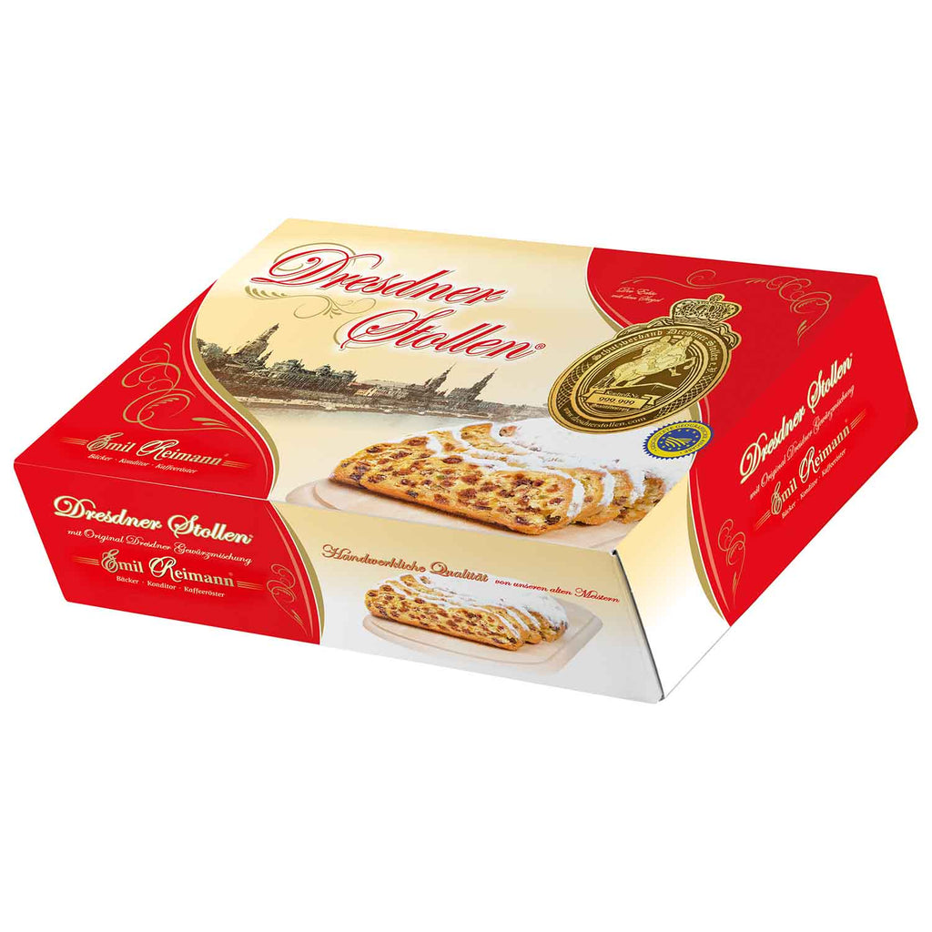 Traditioneller Original Dresdner Stollen von Emil Reimann, reichhaltig gebacken mit Butter, Sultaninen, Marzipan und feinen Gewürzen – saftig, aromatisch und ein Klassiker der Weihnachtszeit.