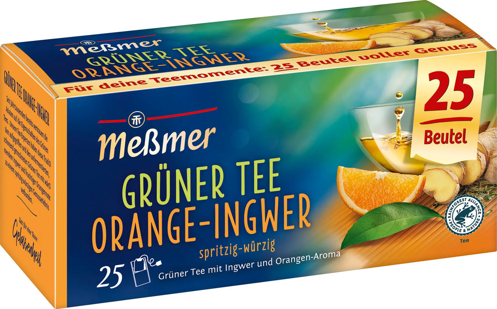 Tè verde aromatico non fermentato con note fresche di arancia e zenzero - proveniente da regioni di coltivazione selezionate e bilanciato armoniosamente dagli esperti del tè Meßmer. Ideale per un inizio di giornata tonificante.